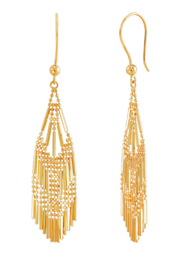 14KT YG PDC BEADED FANTASY MULTI ROW DANGLE EARRINGS