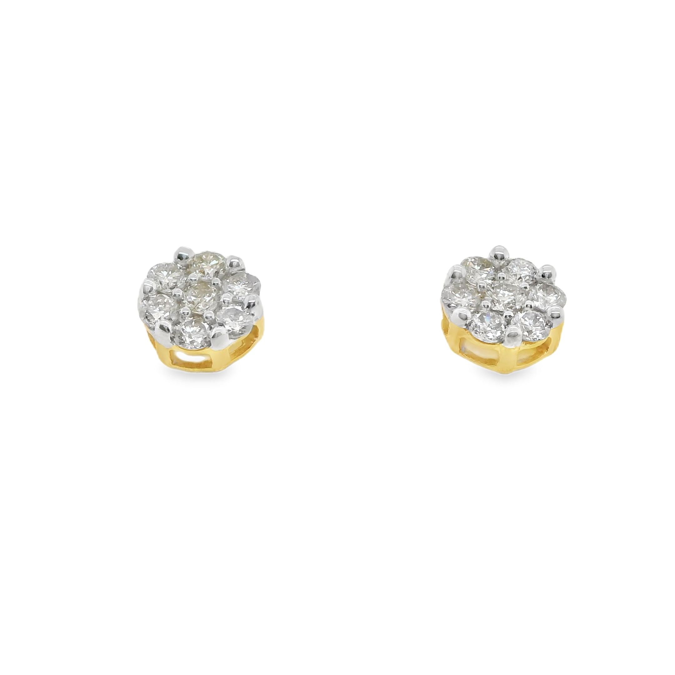 14K YG CLUSTER DIAMOND POST EAR WITH SCREWBACK .55CTTW