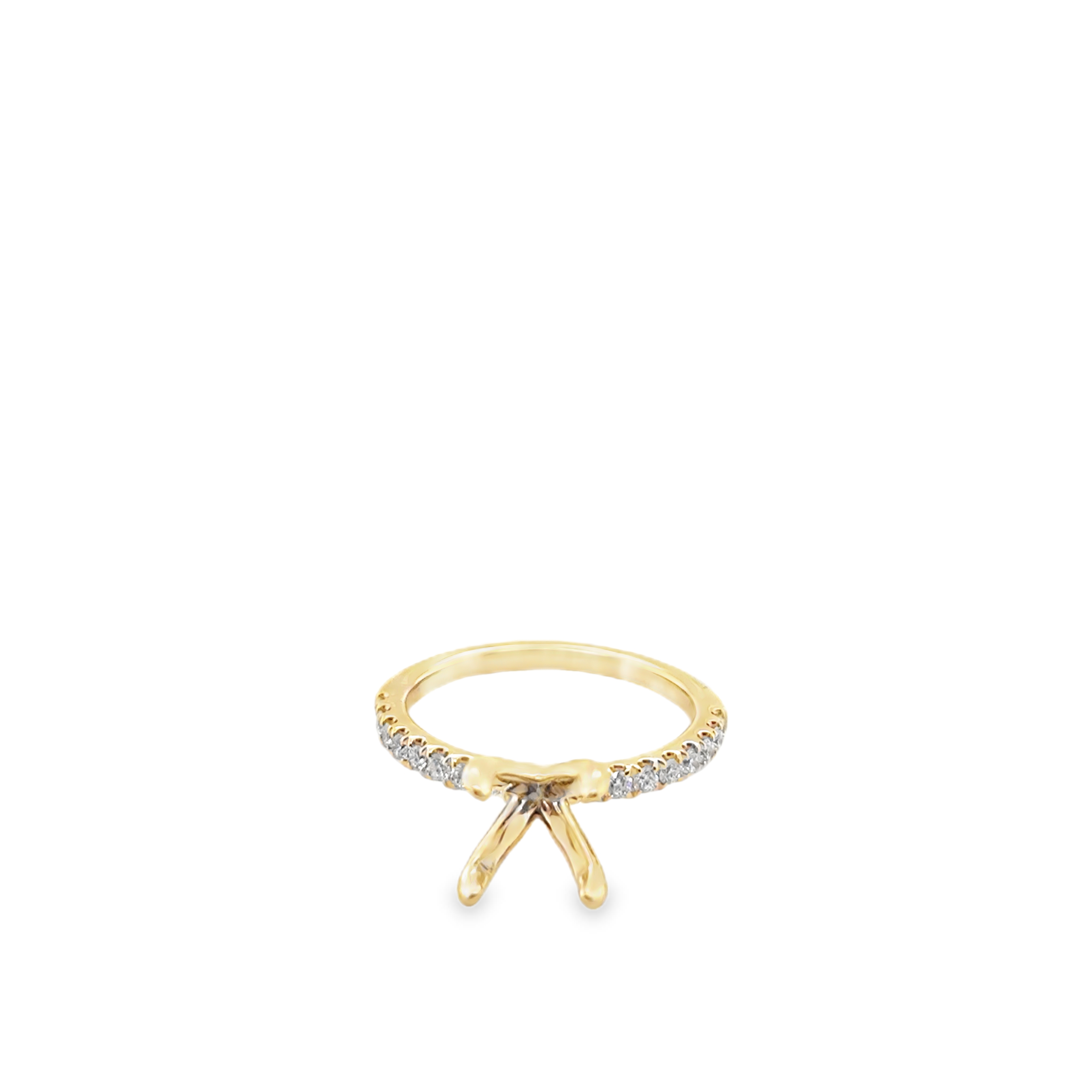 14KT YG DIAMOND 4-PRONG SEMI-MTG 8MM HEAD WITH 16 ROUND DIAMONDS ON SHANK.35CTTW G/VS2