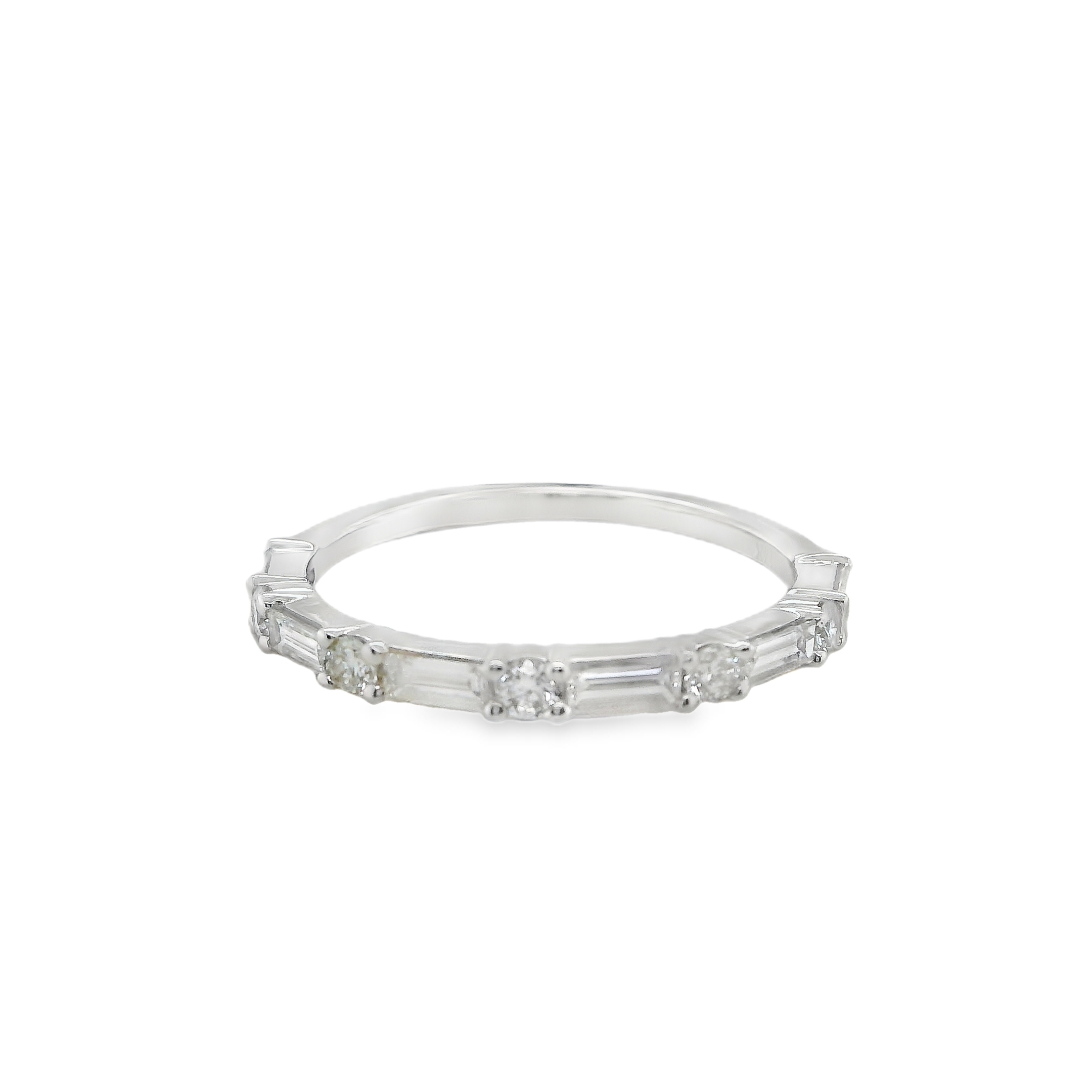 4. 14K WG DIAMOND WEDDING BAND WITH 6 BAGUETTES AND 5 ROUND NATURAL DIAMONDS .50 CTTW